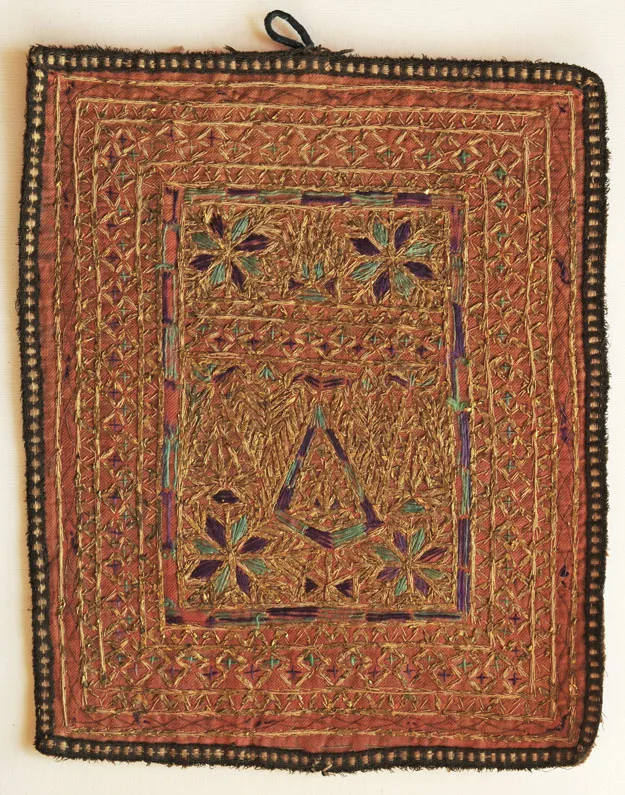 Albero della vita e simboli dell'uiverso. Ricamo-talismano zoroastriano matrimoniale di buon augurio.