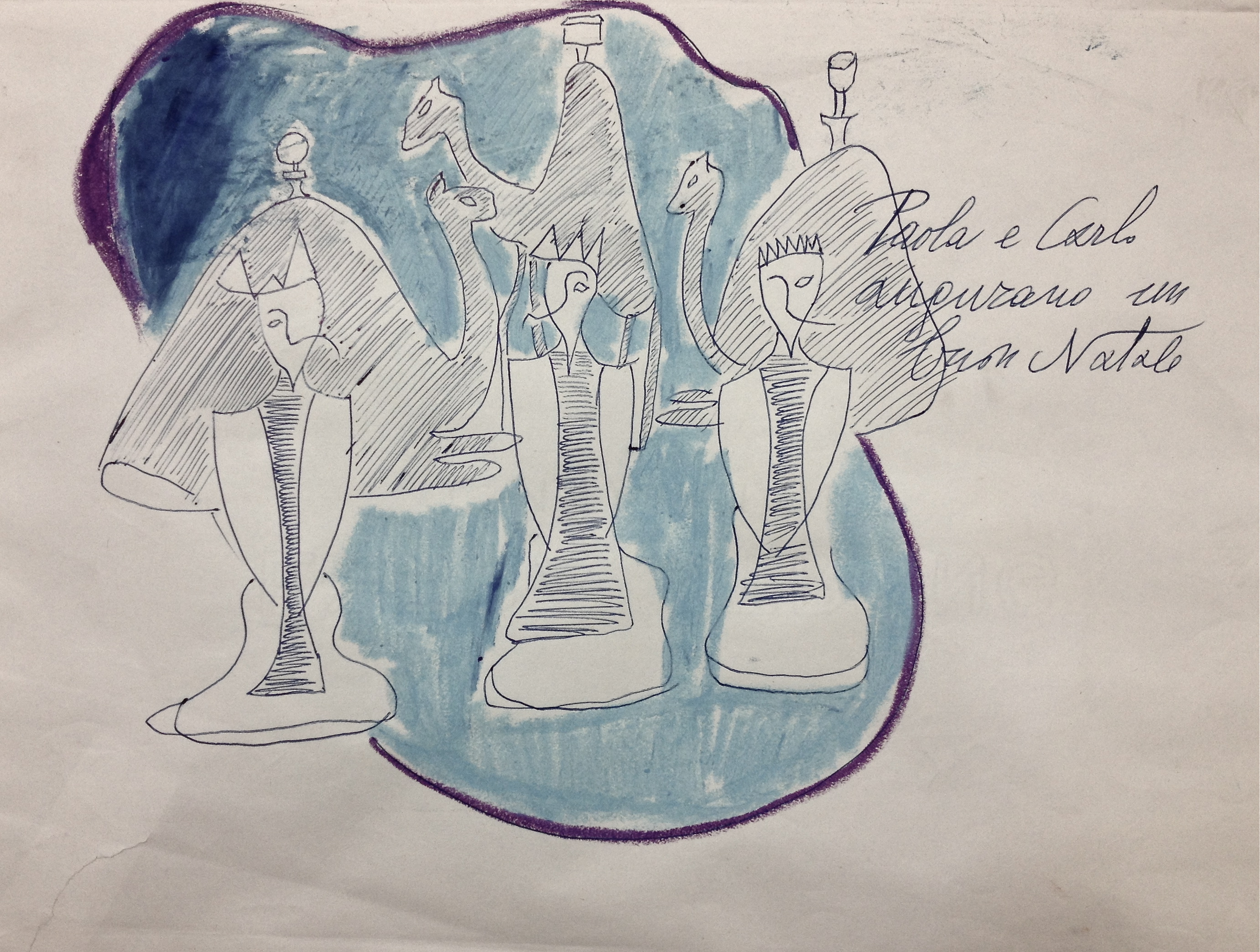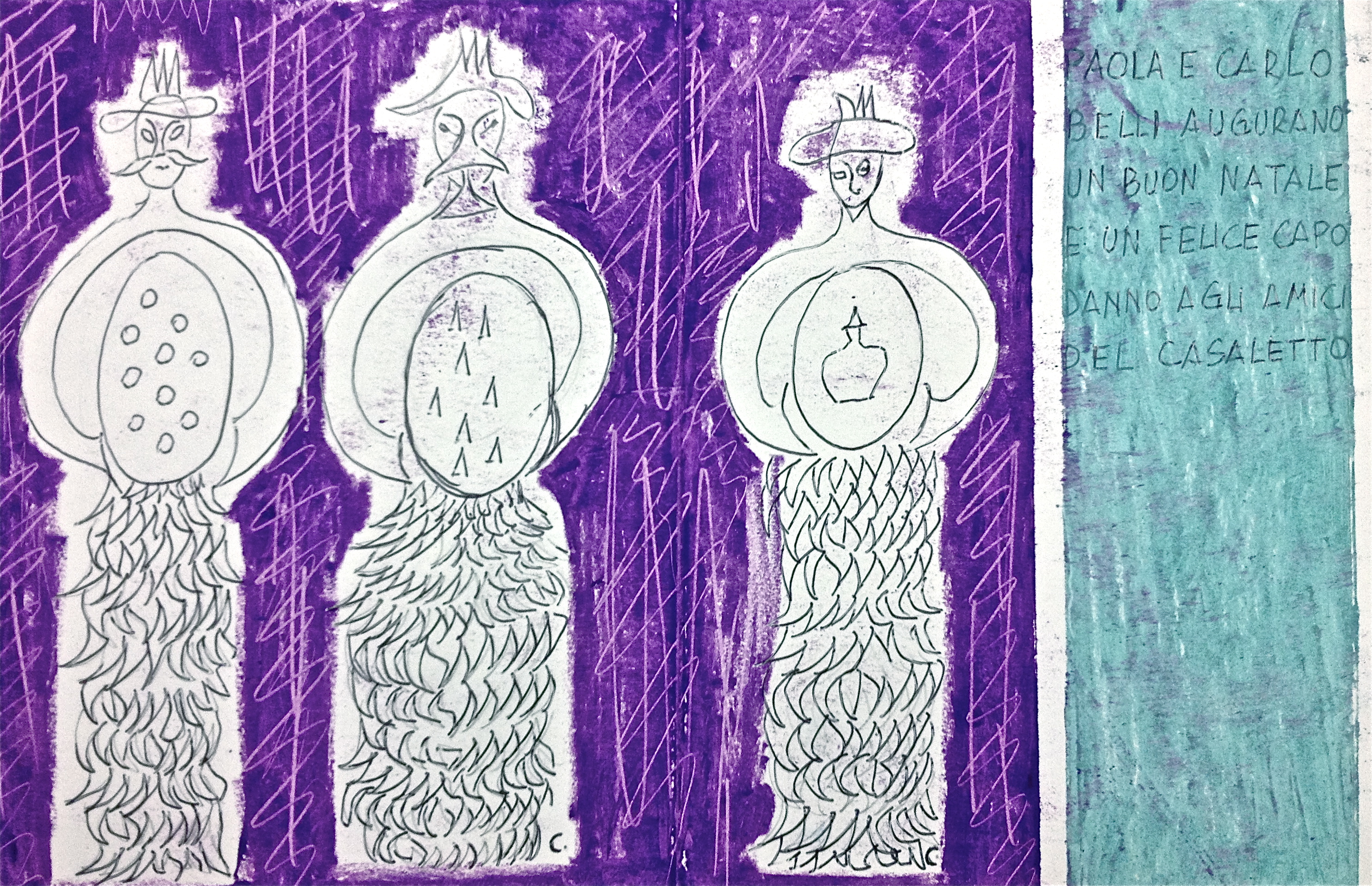 Immagini 12: FSP/2013/AMC/FCB/FD/0011 “Paola e Carlo belli augurano un Buon Natale e un Felice Capodanno agli Amici del Casaletto” (in basso a destra, “C.”)