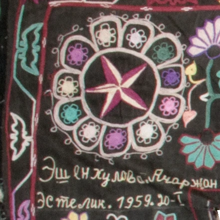In alto, a sinistra: Эшянхулова Ячаржан (Eshonkulova Ocharjon / nome proprio di persona); sottostante, Эстелик. 1959. 20-I (Estelik 1959. 20-I / Ricordo 20 gennaio 1959).