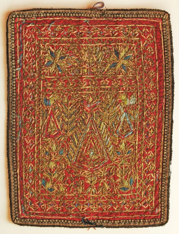 Albero della vita e simboli dell'uiverso. Ricamo-talismano zoroastriano matrimoniale di buon augurio.