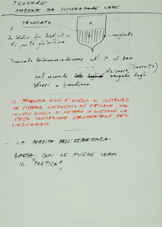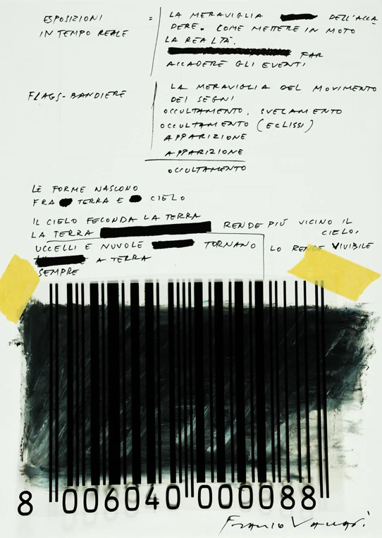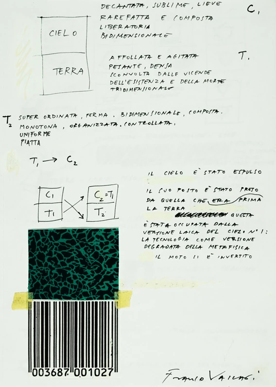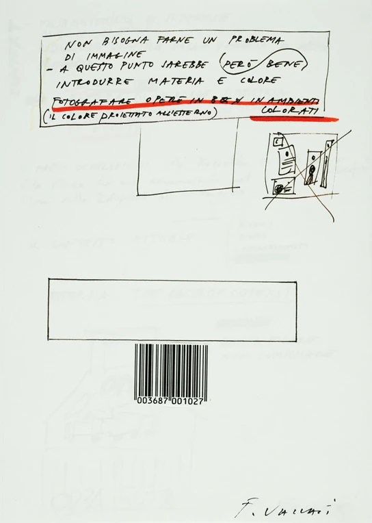 Il taccuino raccoglie gli studi (progetti e chiave interpretativa) per i “Dittici”, le grandi tele esposte alla mostra “Franco Vaccari. Ossessioni” curata da Flaminio Gualdoni e ospitata al Tour Fromage di Aosta nel marzo-aprile del 1990.