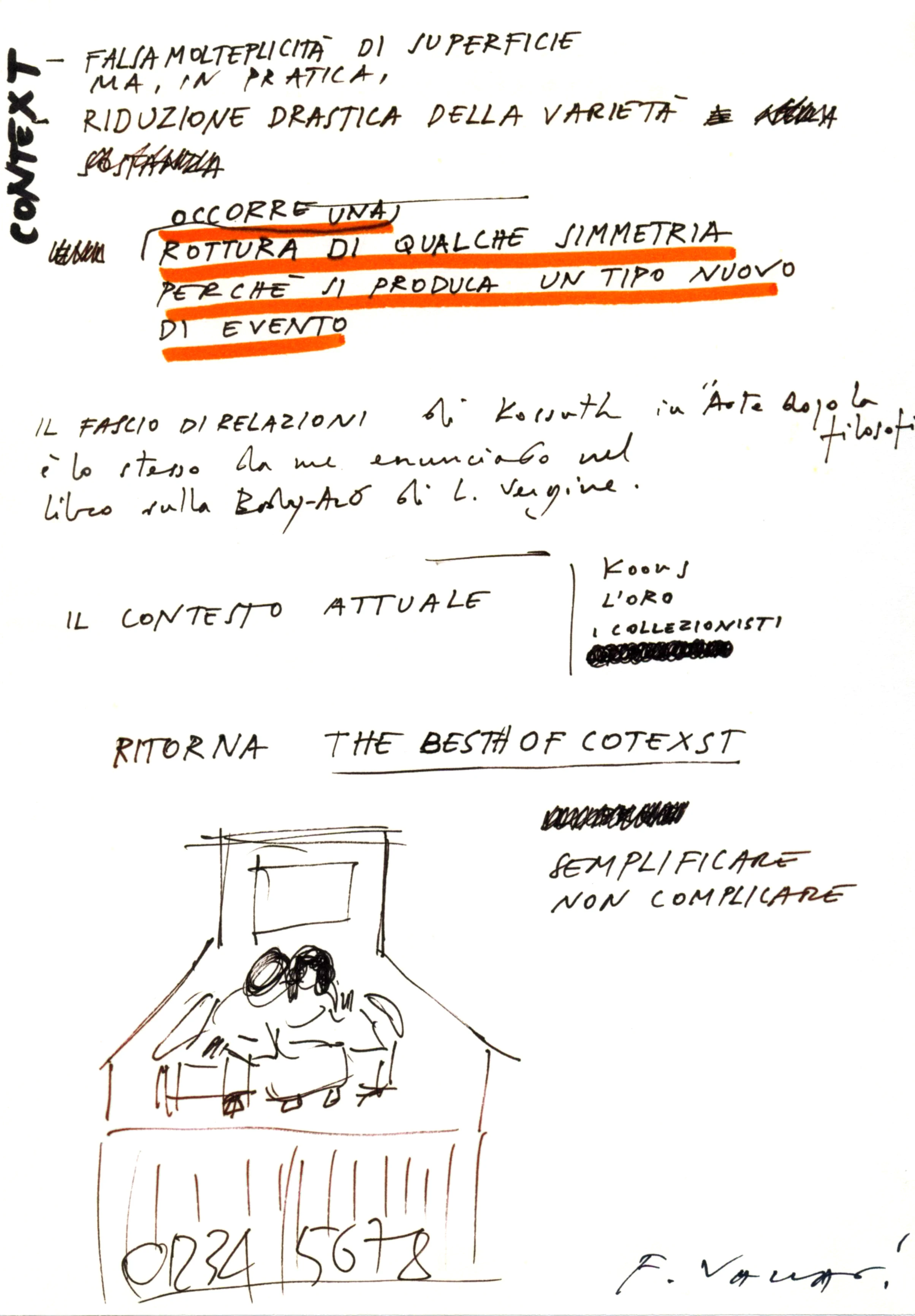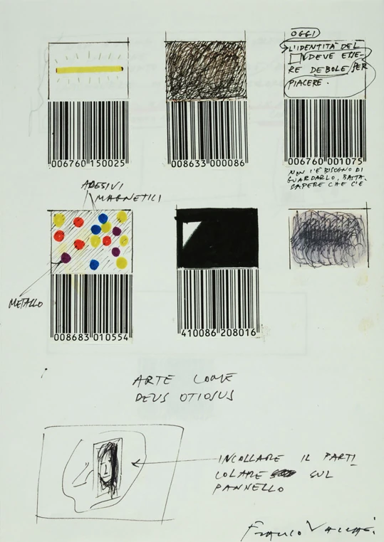 Tutti i fogli sono firmati (su una delle due o su entrambe le facce) “Franco Vaccari”; la data “ott. 89” è apposta sulla prima di copertina.