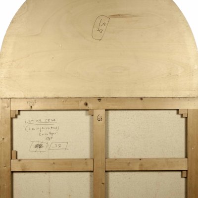 Iscrizioni: Firma autografa sul retro: ULTIMA CENA / (La Veglia di Bach) / Emilio Isgrò / 1985