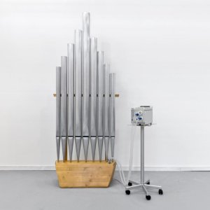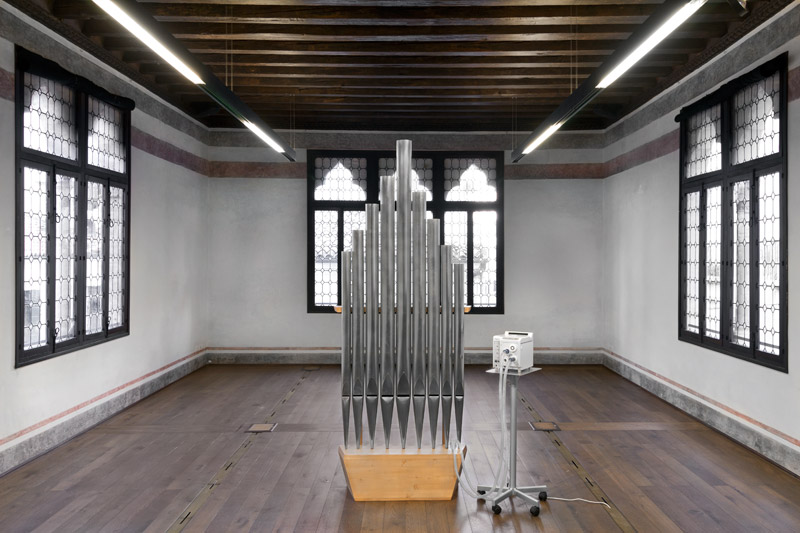 Una macchina medica per la ventilazione polmonare suona un accordo musicale su un organo a canne al ritmo costante del respiro automatico. L’azione di questo organo artificiale genera un cortocircuito di senso che si lega alla volontà e responsabilità di chi avvia – ad libitum – questo requiem meccanico, metafora di un limite che l’uomo delega alla tecnologia.