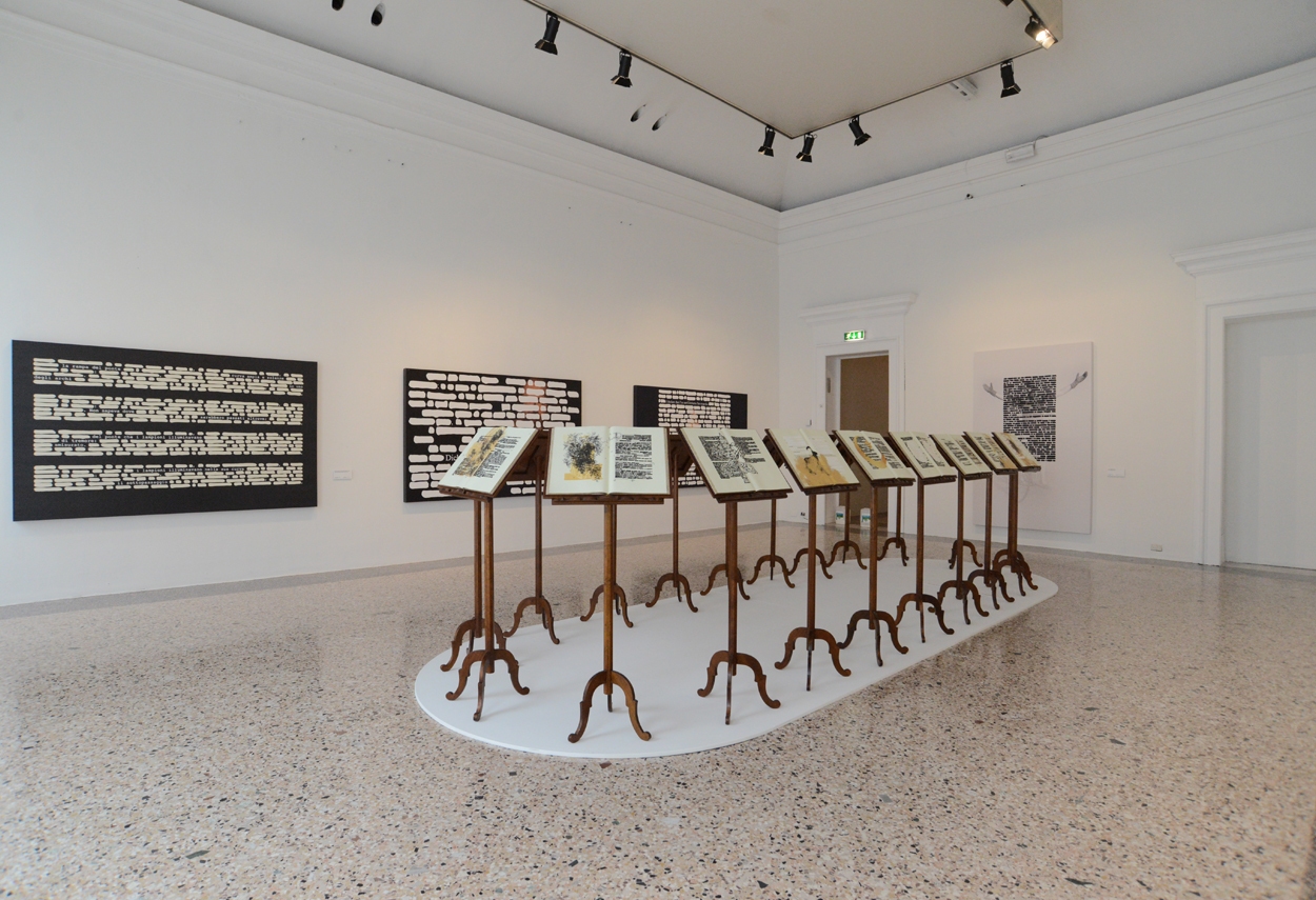 La mostra nelle sale di Palazzo Reale presenta il corpus di opere storiche modulato attraverso blocchi tematici e intervallato da grandi installazioni, che rappresentano uno degli aspetti più significativi ma ancora poco conosciuti della complessa produzione di Emilio Isgrò. Una scelta che lega visivamente i diversi lavori e svela al pubblico i passaggi e le evoluzioni che la cancellatura ha avuto nel tempo.
