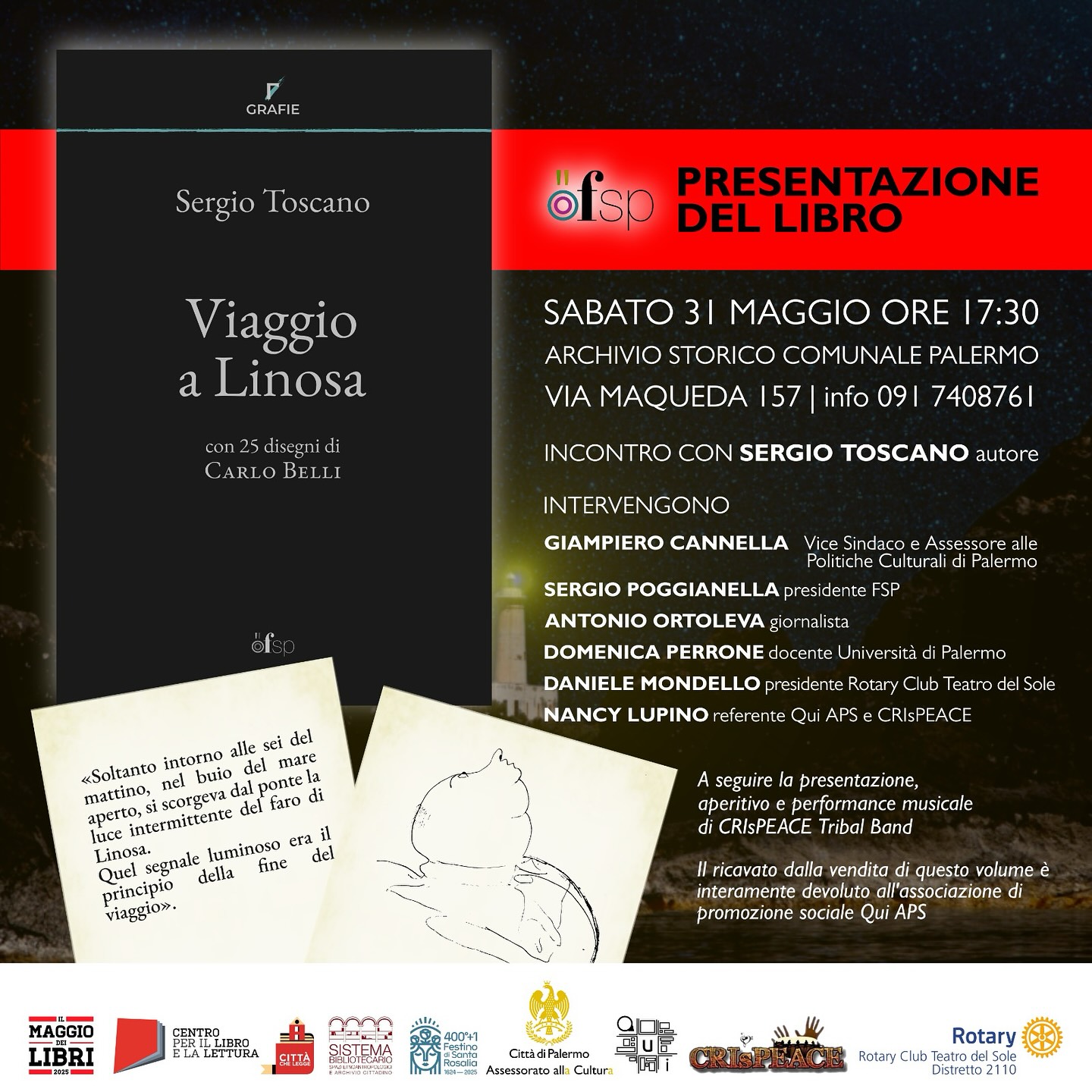 #Frescodistampa. Con “Viaggio a Linosa” di Sergio Toscano si inaugura la collana Grafie, FSP Edizioni. Il volume sarà presentato il 31 maggio presso l’Archivio Storico Comunale di Palermo.