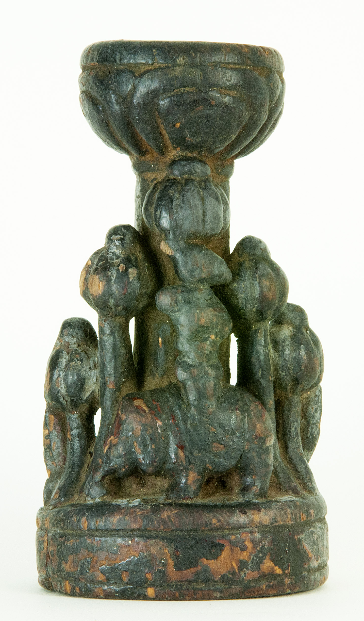 Questa scultura raffigura liconografia buddhista tibeto-mongola dei “Quattro Amici Armoniosi” (Thunpa Punshi in tibetano ed Evtei dörvön amitan in mongolo) in una variante architettonica e funzionale rispetto alla precedente: loggetto è stato infatti concepito come supporto cerimoniale, probabilmente un piedistallo per una piccola statua o un contenitore per offerte.