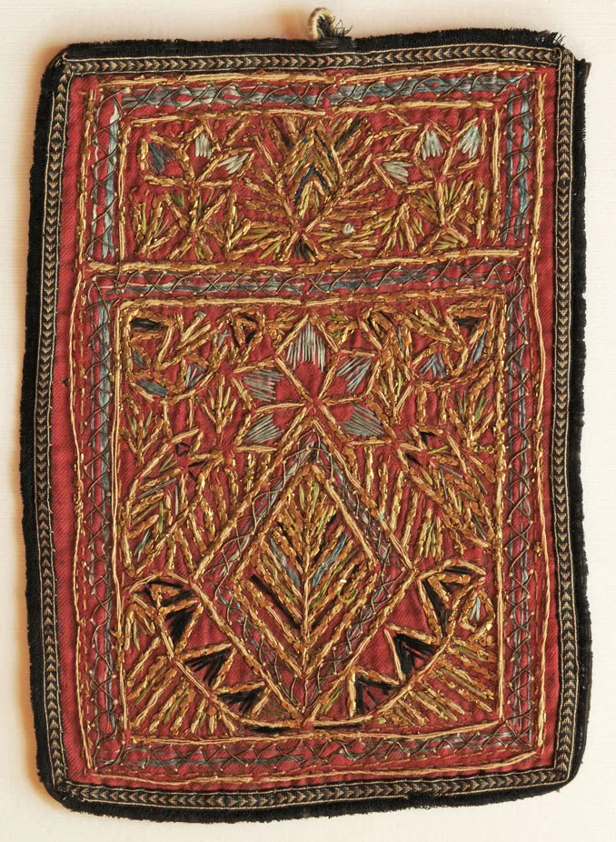 Albero della vita e simboli dell'uiverso. Ricamo-talismano zoroastriano matrimoniale di buon augurio.