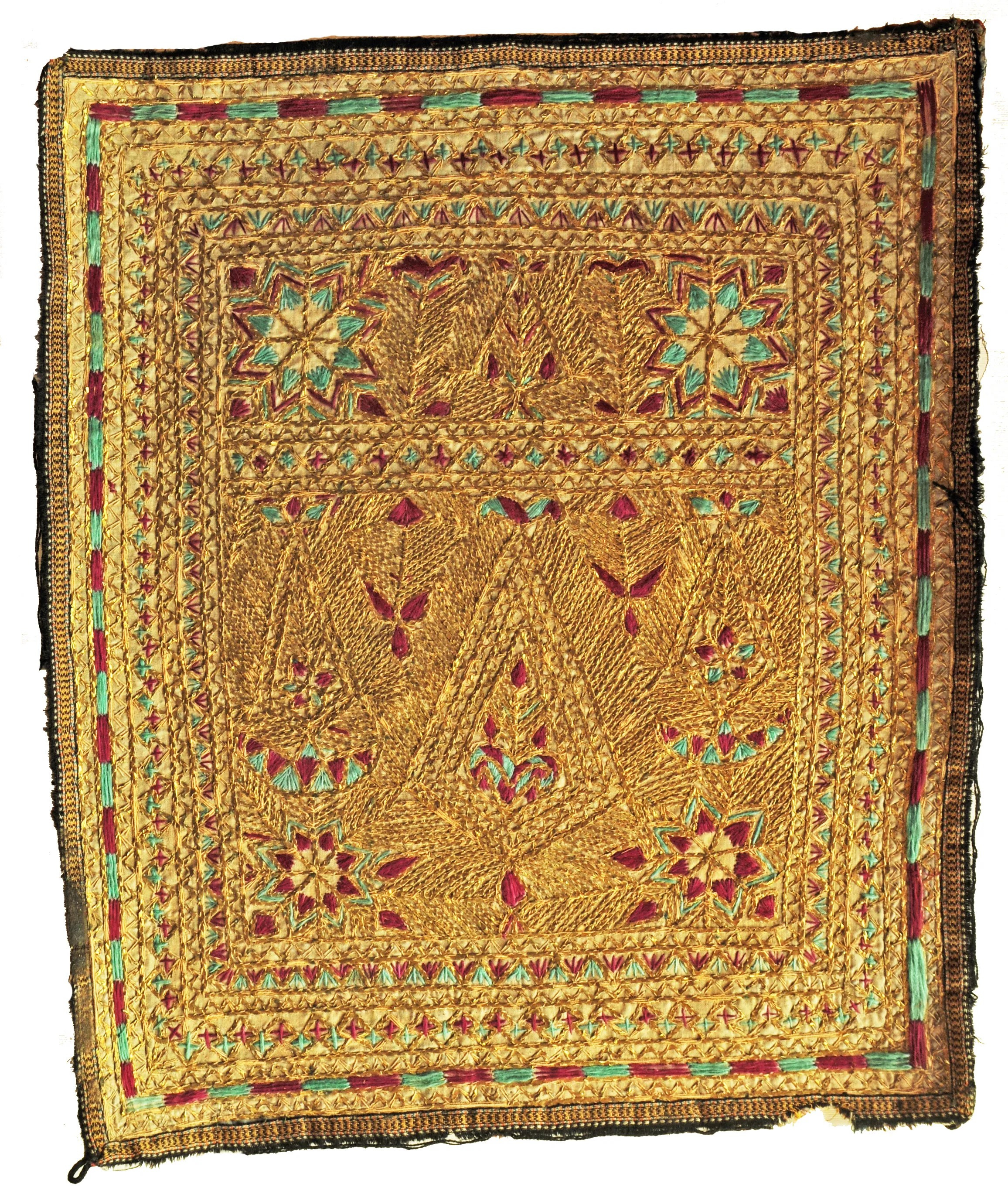 Albero della vita e simboli dell'uiverso. Ricamo-talismano zoroastriano matrimoniale di buon augurio.