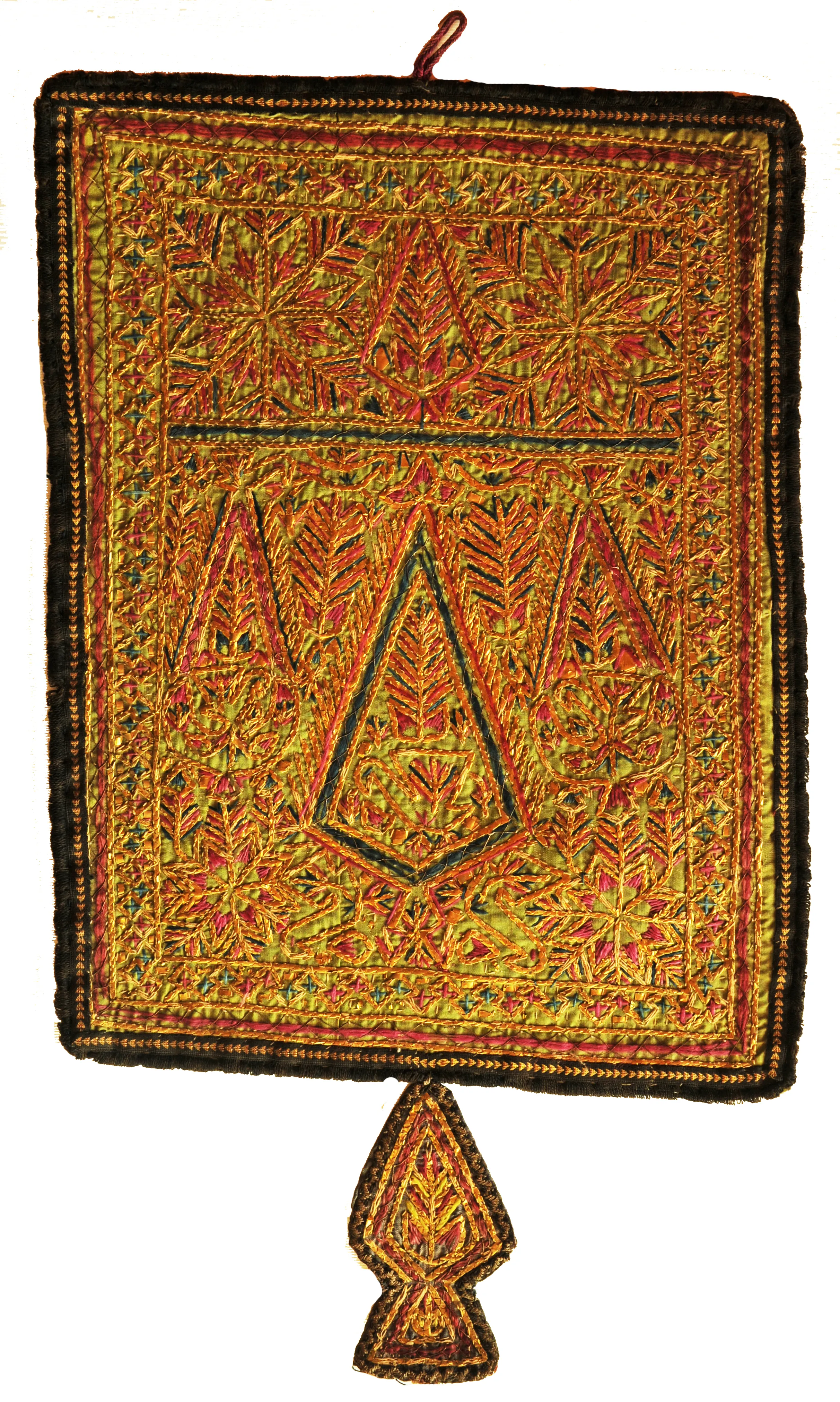 Albero della vita e simboli dell'uiverso. Ricamo-talismano zoroastriano matrimoniale di buon augurio.