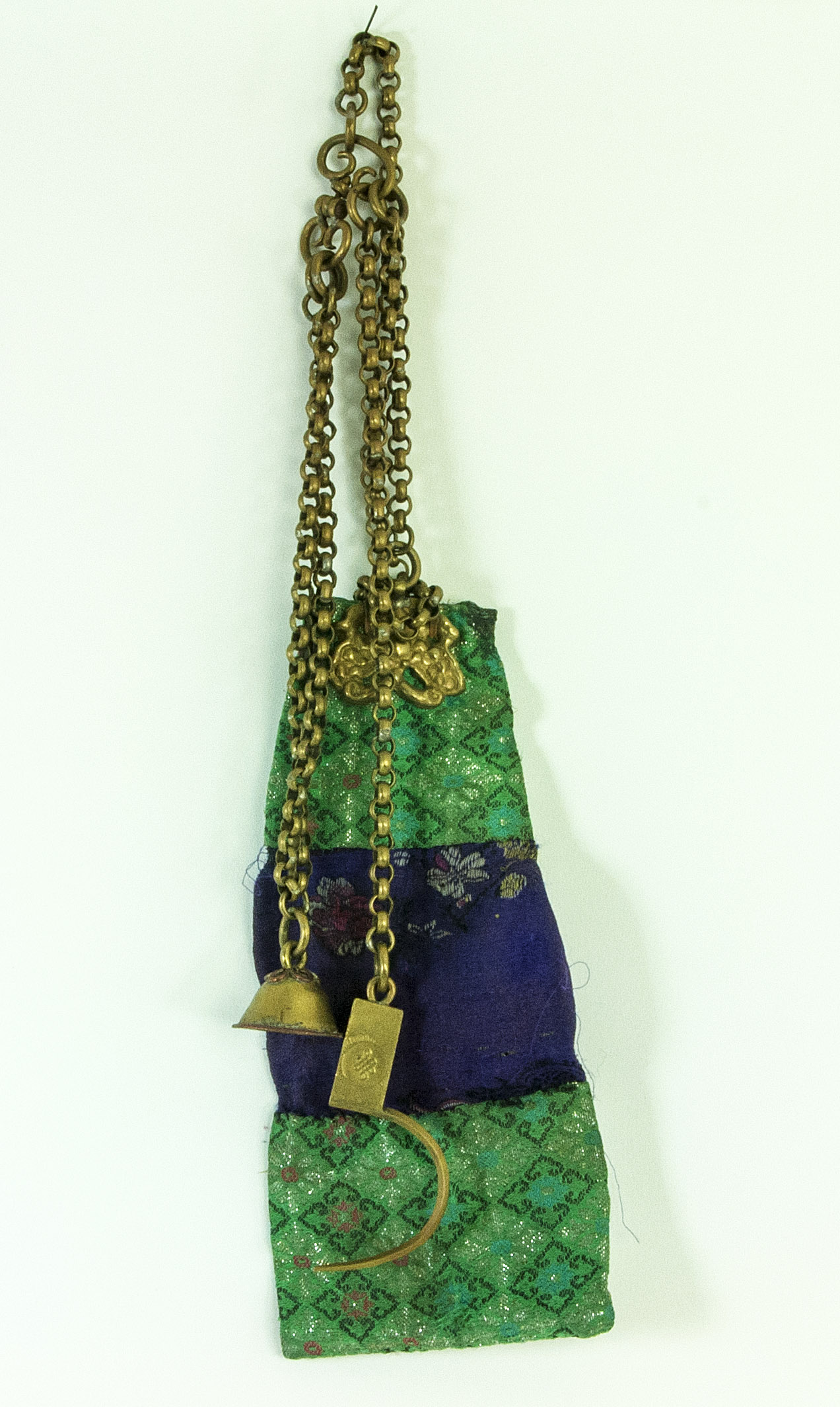 - Sete broccate policrome (sacca), ottone (catena e accessori)