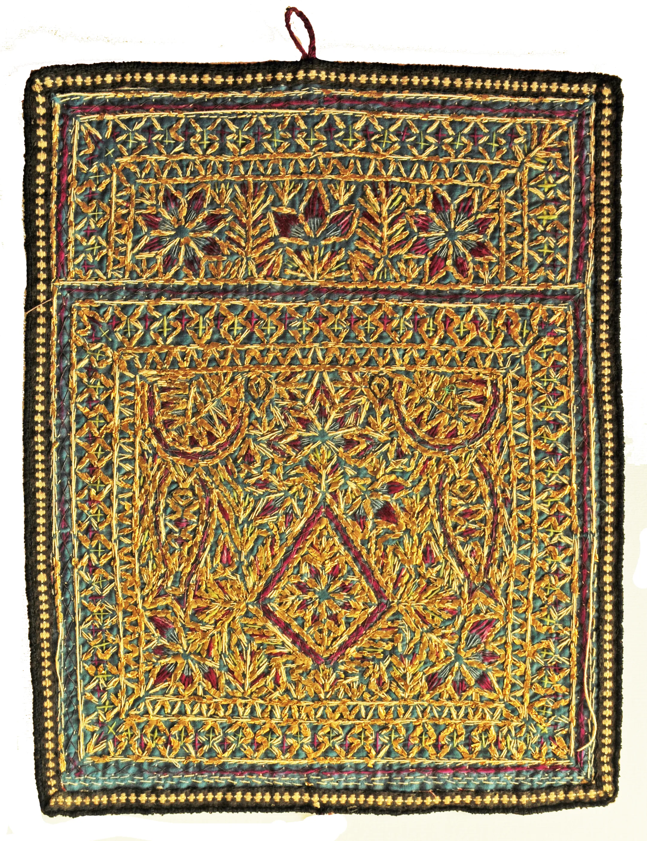 Albero della vita e simboli dell'uiverso. Ricamo-talismano zoroastriano matrimoniale di buon augurio.