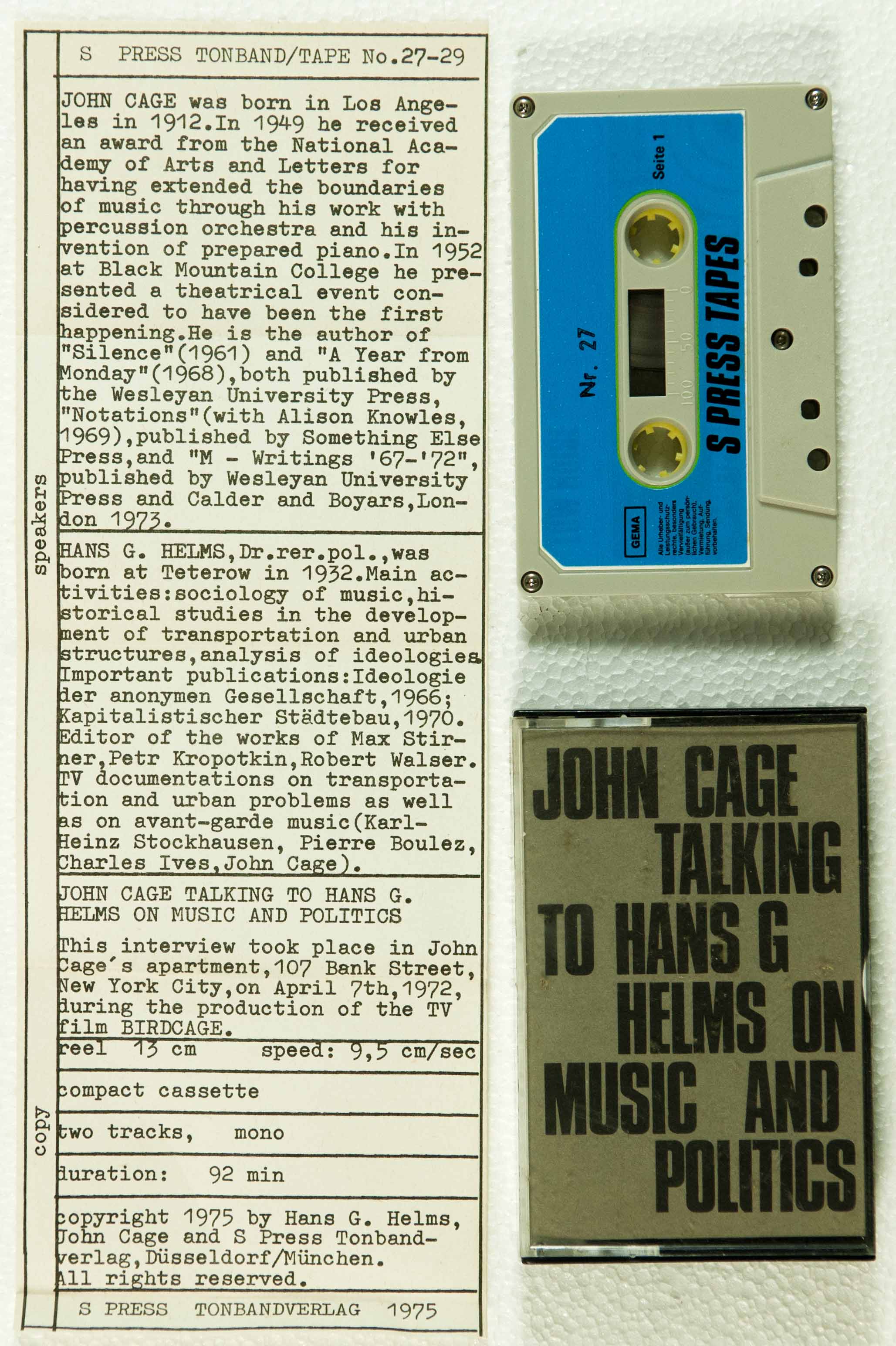 Audiotape firmata e numerata, pubblicata da S-Press Tapes, München / 200/200