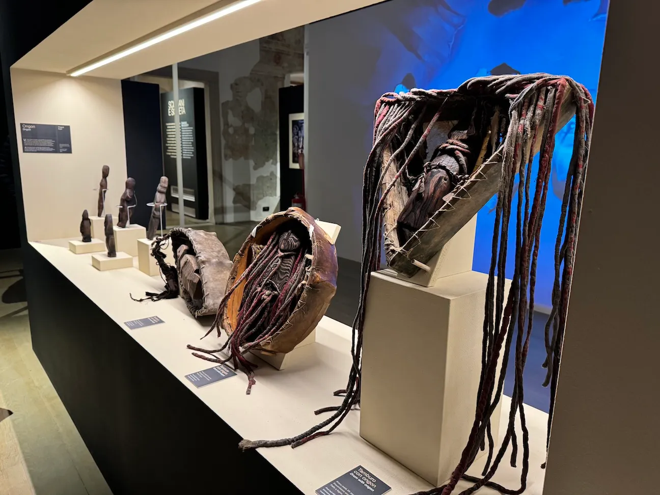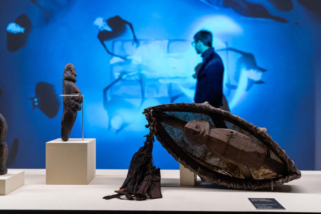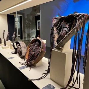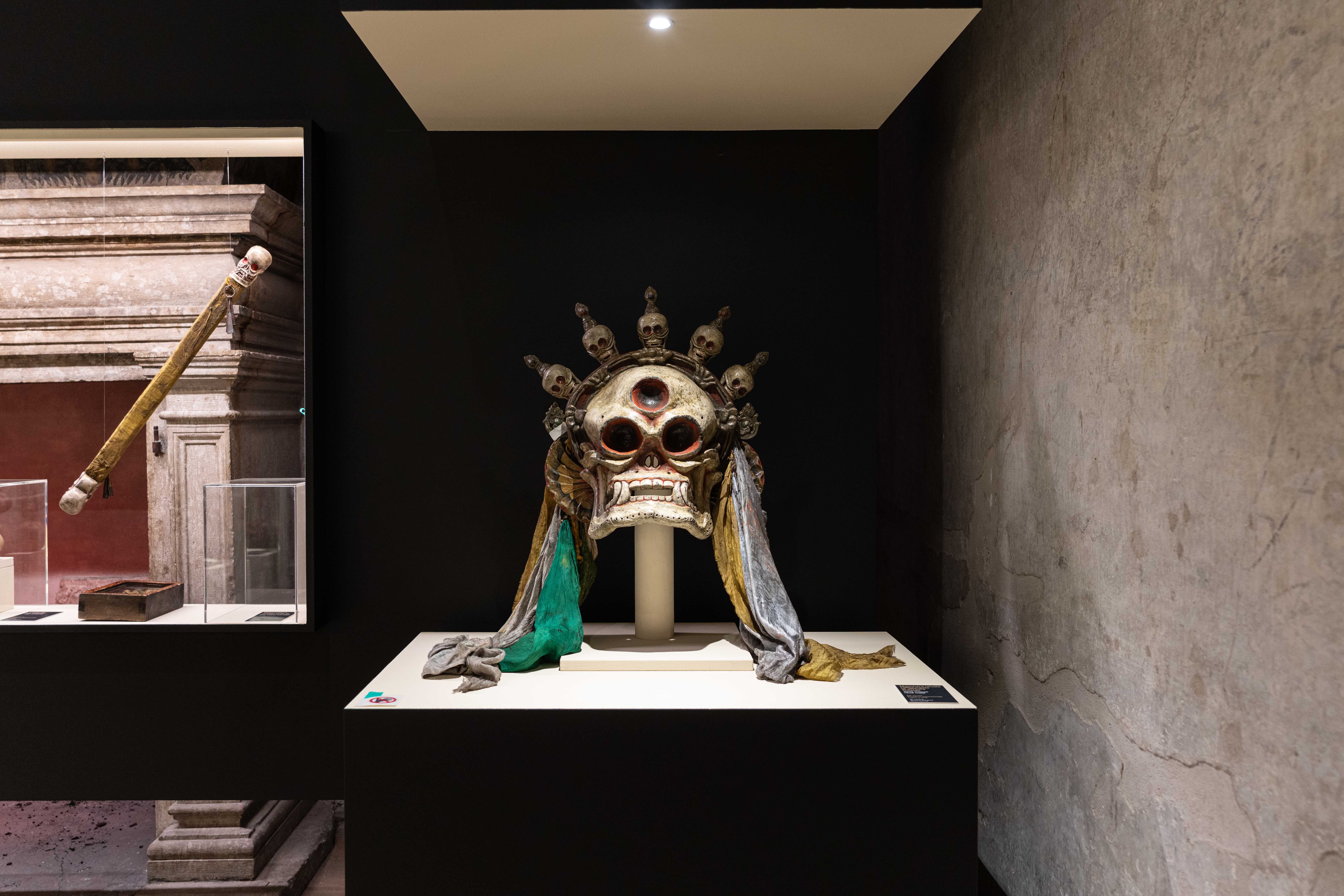 A dialogare con amuleti, bastoni e costumi rituali della FSP anche alcuni reperti archeologici delle Collezioni MUSE, come le pietre dipinte di Riparo Dalmeri, considerate la prima testimonianza artistica e spirituale sulle montagne trentine, oltre ai prestiti di reperti archeologici provenienti di musei delle Marche e della Sardegna.
