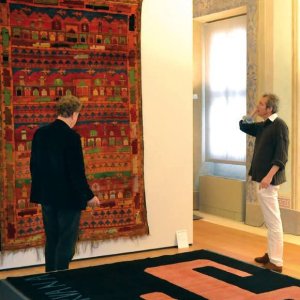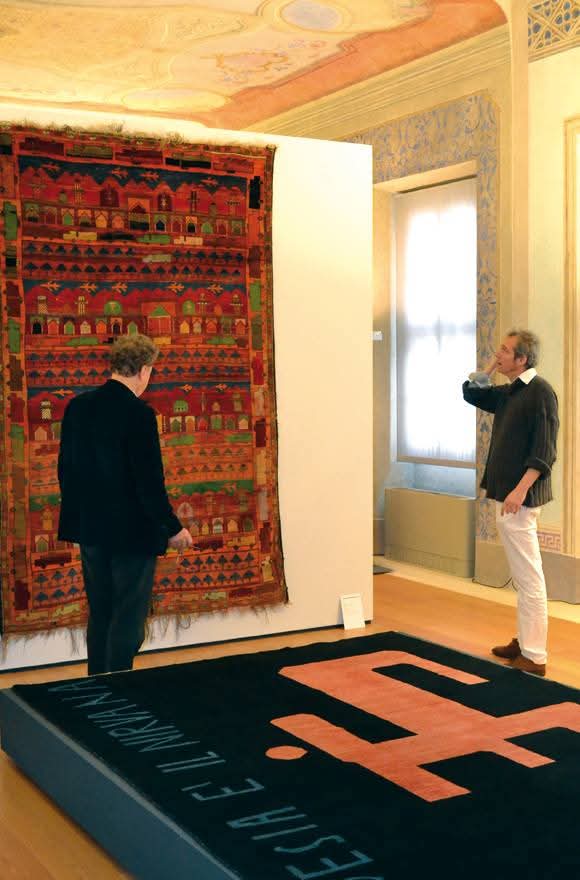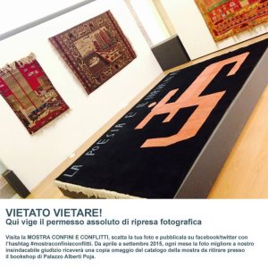 Lo abbiamo voluto sottolineare affiancando, nel percorso espositivo, accanto ai war rug, le opere di arte contemporanea di Vittorio Corsini, Andrea de Carvahlo, Federico Lanaro, Aldo Mondino e Sarenco: artisti di generazioni differenti e dai linguaggi differenti che interpretano il tappeto confrontandosi sul tema della guerra e della sua denuncia, dei rapporti di forza tra le potenze, del dialogo tra le religioni.