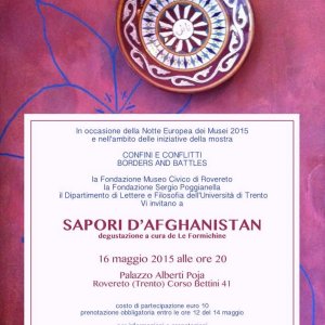 Una finestra della Rassegna Internazionale del Cinema Archeologico su Archeologia e paesaggi archeologici al tempo della guerra; la partecipazione ad Educa festival sull’educazione; per la Notte Europea dei Musei, laboratori, proiezioni e cena afghana; una festa dedicata all’Afghanistan in collaborazione con Forum Trentino per la Pace e Diritti Umani, l’Associazione Afghanistan 2014 e KVLTure; spettacolo teatrale e mostra a cura di Emergency, in collaborazione con Rovereto IN Centro; l’adesione alla Giornata Internazionale della Pace-ONU.