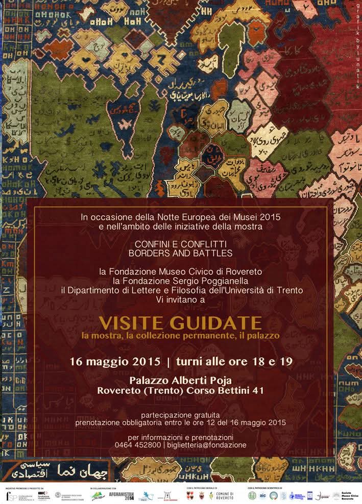 La mostra “Confini e Conflitti. Visioni del potere nel tappeto figurato orientale” è promossa e prodotta dalla Fondazione Sergio Poggianella, dalla Fondazione Museo Civico di Rovereto e dal Dipartimento di Lettere e Filosofia dell’Università di Trento; essa è proposta in collaborazione con il Forum Trentino per la Pace e i Diritti Umani, la Giornata Internazionale della Pace – Onu e l’Archivio Aldo Mondino.