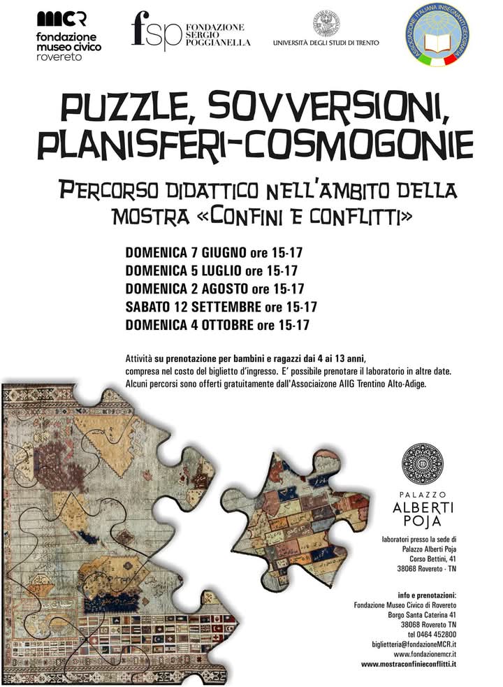La mostra e il catalogo prodotti per l’iniziativa «Confini e Conflitti. Visioni del potere nel tappeto figurato orientale» inaugurano un ciclo di iniziative e di collaborazione tra FSP, FMCR e il Dipartimento di Lettere e Filosofia dell’Università di Trento a scopo didattico ed educativo, sotto la direzione scientifica di Elena Dai Prà (docente di Geografia presso il Dipartimento di Lettere e Filosofia, Università di Trento). Dai percorsi didattici per la Scuola Primaria alla ricerca accademica post-laurea.