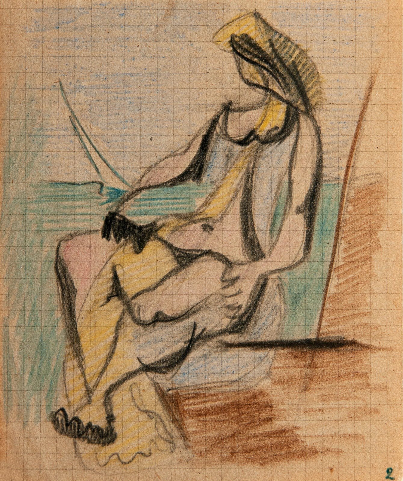 Prampolini ebbe un legame esistenziale profondo con Capri. Dall’Isola, dove arrivava ai primi di agosto, tornava a settembre carico di programmi e d’idee. Ma, specie negli ultimi anni, idee e progetti si traducevano in preoccupazioni e ansie. Il calendario, le date, le maledette scadenze per le mostre e gli allestimenti teatrali, avvelenavano già dall’Isola la lettura serena delle cose che la pausa estiva gli aveva concesso. Della serenità di quelle settimane testimonia la quantità di taccuini pieni di disegni e abbozzi che ogni anno a Capri produceva del tutto spontaneamente. Dominano nei suoi taccuini capresi forme, colori, temi (in particolare quello femminile) che rivelano lo spirito dionisiaco, l’eros in festa e rilassato. Alla fine della stagione estiva, quando amici e colleghi si affrettavano a rientrare nelle città, Prampolini ritardava il ritorno. Preferiva restare e vedere l’Isola senza il parossismo turistico, le vie deserte forse un po’ malinco‐ niche, di una malinconia che anticipava già le nostalgie invernali. C’è una bella lettera all’amica Enza D.P. in cui racconta quella Capri silenziosa con la pace e la recuperata solitudine, in conflitto con le sensazioni dell’estate appena finita.