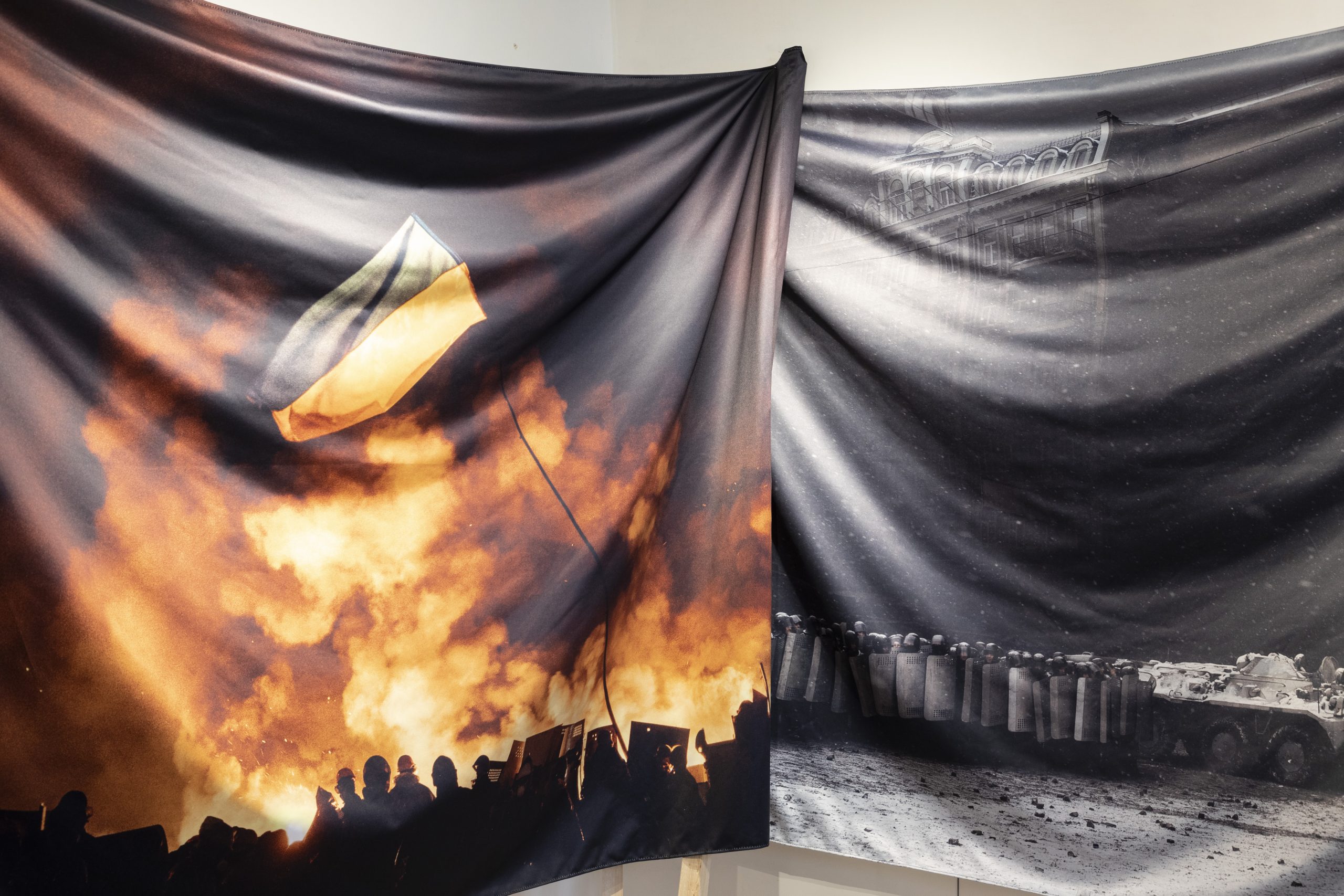 “La guerra è finita! La pace non è ancora iniziata” pone al centro della ricerca la fragilità di un momento di passaggio in cui un vecchio sistema è caduto e ne sta per sorgere un altro: un chiaroscuro in cui solo decisioni all’insegna del dialogo possono garantire un futuro. La presenza in mostra della prima bandiera della pace, creata nel 1961 da Aldo Capitini, fondatore del movimento nonviolento italiano, sottolinea l’importanza di chi lavora per costruire la pace.