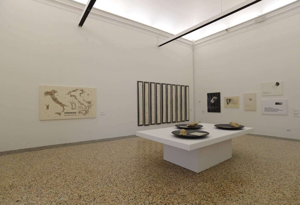 La mostra nelle sale di Palazzo Reale presenta il corpus di opere storiche modulato attraverso blocchi tematici e intervallato da grandi installazioni, che rappresentano uno degli aspetti più significativi ma ancora poco conosciuti della complessa produzione di Emilio Isgrò. Una scelta che lega visivamente i diversi lavori e svela al pubblico i passaggi e le evoluzioni che la cancellatura ha avuto nel tempo.