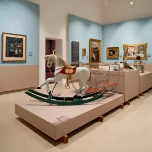 Si tratta di due universi separati, che solo di quando in quando hanno trovato modo di rispecchiarsi gli uni (i giocattoli) nelle altre (le opere d’arte): il lungo racconto di figure ed oggetti che si snoda nelle sale espositive di Palazzo Pretorio, offre da differenti, dialettici o integrati punti di vista un osservatorio inedito e suggestivo sui mutamenti della società italiana nel corso dei decenni, sulle variazioni dei modelli pedagogici, di vita e di pensiero e sul rapporto spesso controverso fra il mondo degli adulti e quello – assai più misterioso – dei bambini.
