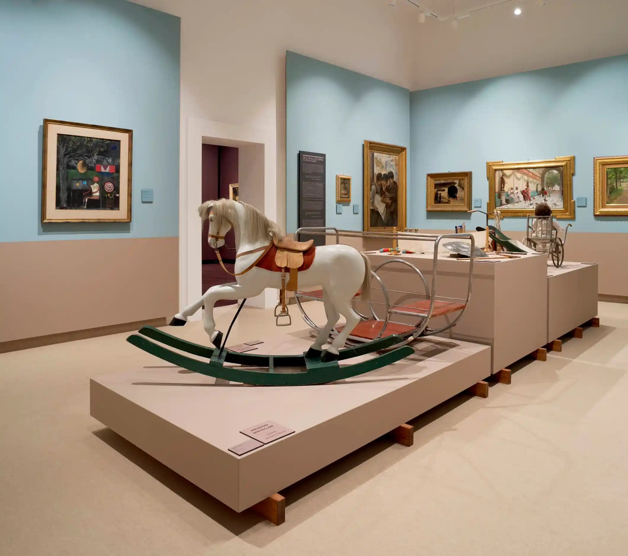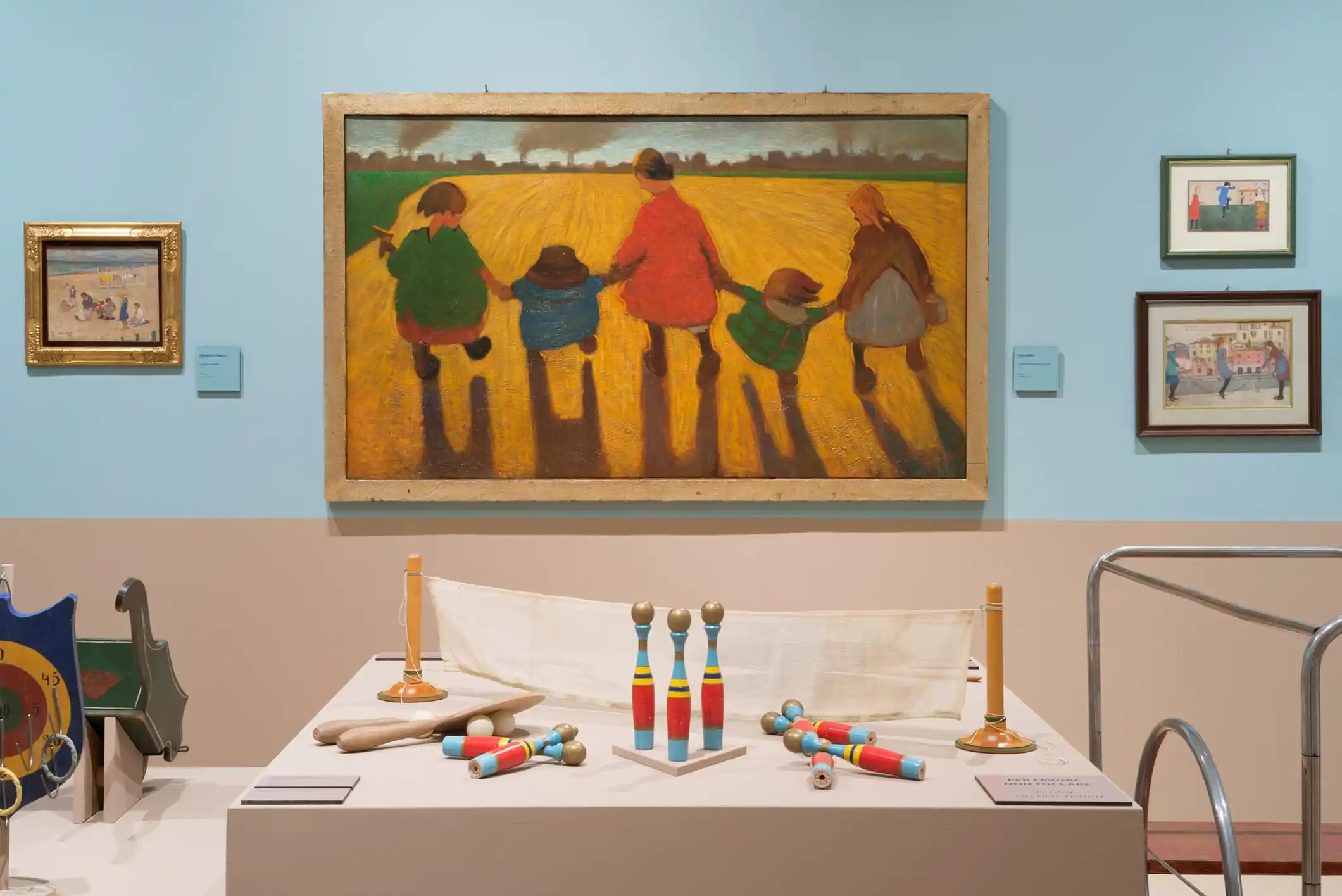 Le opere degli artisti italiani che hanno prediletto il tema dell’infanzia, dialogheranno in mostra, intorno ad alcuni temi chiave, con nuclei di oggetti ludici, scelti di volta in volta per la loro valenza sociale, didattica, ma anche più latamente simbolica e onirica; di questi saranno messi in evidenza il mutamento formale, l’avvicendarsi dei materiali in uso, il loro attingere ai mutamenti tecnologici in atto.